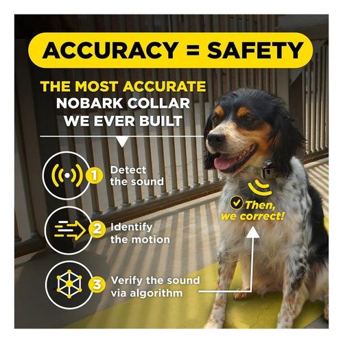 Dogtra Smart Nobark is the most accurate bark collar we've ever built, equipped with a revolutionary triple detection sequence to accurately detect and verify barking and other behaviors. Here’s how it works: Multiple sensors detect sound and motion, such as barking, whining and howling, then our unique algorithm verifies the data, filtering out ambient noises and sounds from general motions like shaking heads. Paired with a complimentary app that allows remote control, Dogtra Smart Nobark provides you with the peace and control you desire, all while keeping your dog’s safety in mind.
