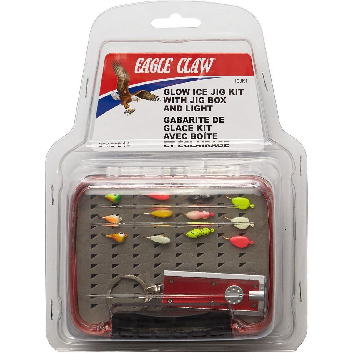 Eagle Claw Glow Ice Jig Kit with Jig Box and Glow Light