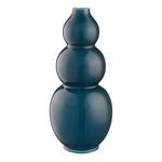 The Celia Vase has a playful rounded shape resembling three stacked orbs, with a narrow mouth opening. The deep blue glossy glaze adds to its whimsical appeal.