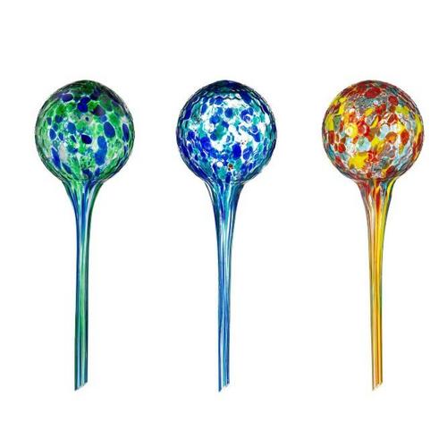 Keep your plants hydrated effortlessly with this assortment of watering globes. These decorative yet functional globes release water slowly into the soil, ensuring plants get the moisture they need with little effort. This assortment is made with art glass. Art glass has been practiced for many years and is a brilliant blend of aesthetics and craftsmanship. The glass embodies both fragility and strength in the exquisite delicacy of the design. Easy to use and stylish, they add a touch of charm to any indoor or outdoor garden. Perfect for busy gardeners, these watering globes make plant care a breeze.