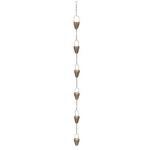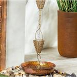 Listen to the sound of this rain chain whenever rain falls for a sweet and delicate sound that is sure to delight. It features a beautiful basket design. Make rainy days a little brighter when displaying this elegant rain chain in any outdoor space. The weather-resistant metal ensures it is outdoor safe and continues to bring joy season after rainy season. Simply hang by the metal loop and listen as the rain trickles down this charming design.