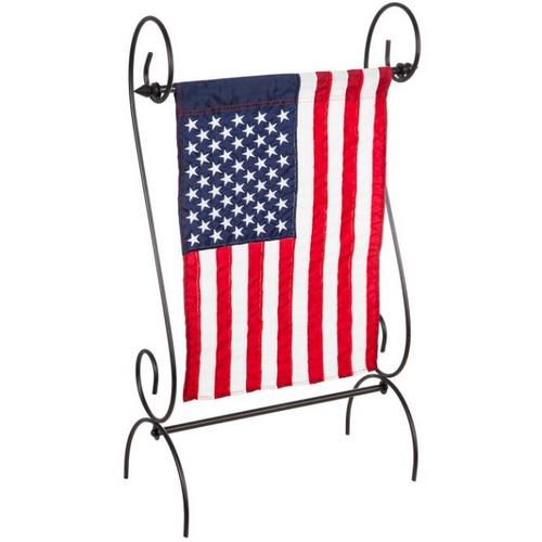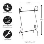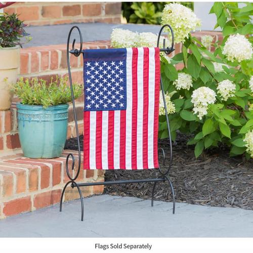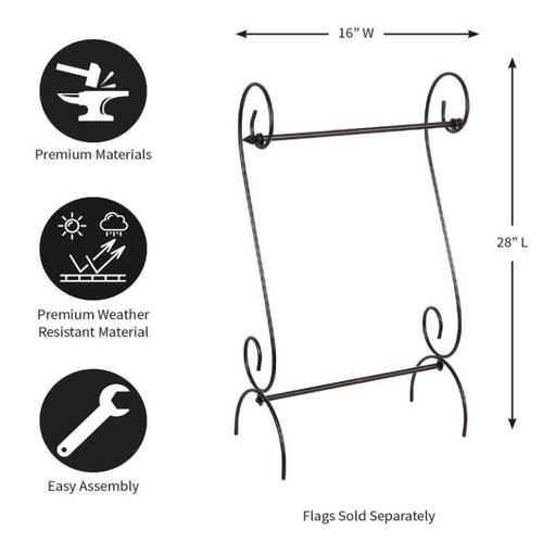 Display your flag with pride on your porch or patio with this scroll patio garden flag stand. Made of powder-coated, weather-resistant metal, this elegant flag pole will keep your flag from blowing away in any kind of weather.
