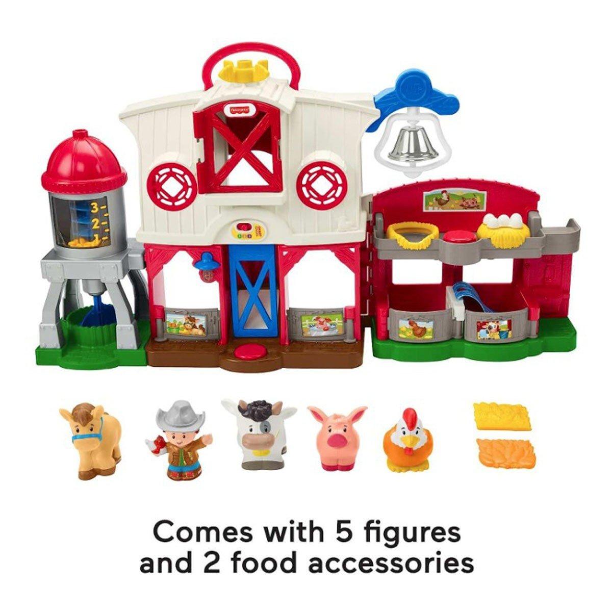 Kids can discover all sorts of fun on the farm with the Little People Caring for Animals Farm playset from Fisher-Price. This action-Packed electronic playset lets toddlers care for all their animal pals, from hatching chicks to tucking in the horse for its nap and showing the pig and cow how to take turns dropping through the hayloft. And with Smart Stages technology, playtime can grow along with your little farmer with 3 levels of fresh songs, sounds and phrases that teach counting, colors, animal sounds and more.