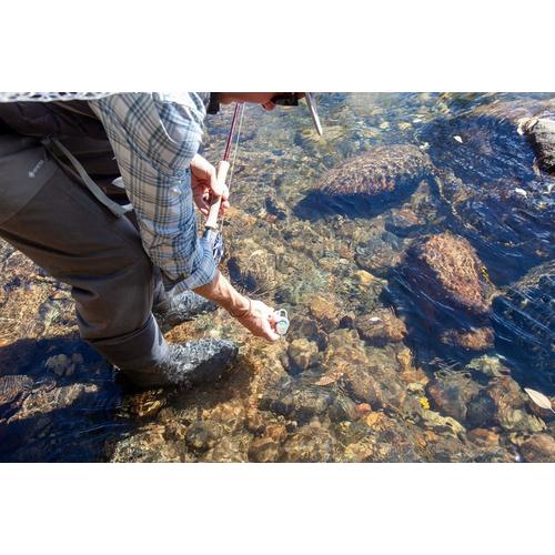 When the difference between a lights-out day on the water and a hike in the woods comes down to water temperature, the accuracy of your thermometer is crucial. Compact and easy to handle, the Riverkeeper Thermometer is the only IPX7 submersible-rated digital thermometer designed by and for fly anglers. With a rugged exterior, a large backlit UV-filtered screen, a replaceable battery, and a durable aluminum probe, this thermometer is built to withstand years of rigorous use outdoors. The Riverkeeper is the perfect tool for taking precise temperature readings, helping you determine whether it's safe to fish and when your quarry might be most active.