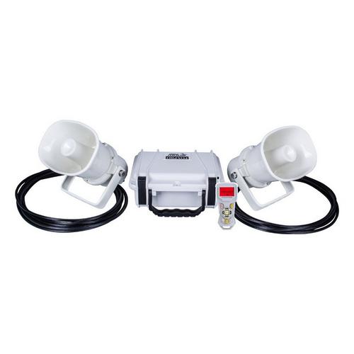 Bring those circling snow geese and crows within gun range, with the compact and powerful SNOW PRO from FOXPRO. This electronic call comes standard with 75 high quality FOXPRO sounds and can store and access up to 300 sounds. The SNOW PRO comes with 37 of the most proven snow goose sounds, 29 predator sounds, and 9 crow sounds. The SNOW PRO is powered by an 11.1 lithium battery pack (battery and charger included). The SNOW PRO comes with two 10 watt external speakers and allows you to connect up to four external speakers. The SNOW PRO is USB reprogrammable and offers the ability to add an external battery source for extended run times. The SNOW PRO remote offers long range control and comes standard with an elastomeric keypad to make operation easier when wearing gloves.