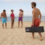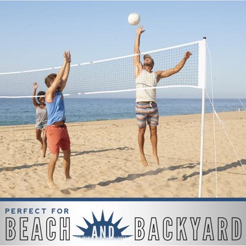 The Franklin Sports Volleyball set is a classic outdoor game that will bring hours of fun for all ages. The set includes all you need for a day of fun: (1) volleyball pole set and net, (1) volleyball and pump and (6) ground stakes and ropes. The Volleyball set is easily transportable to your next picnic, BBQ or party and is sure to be a hit. Volleyball is a timeless classic yard game that can be enjoyed by all ages...bring this set to your next gathering today!