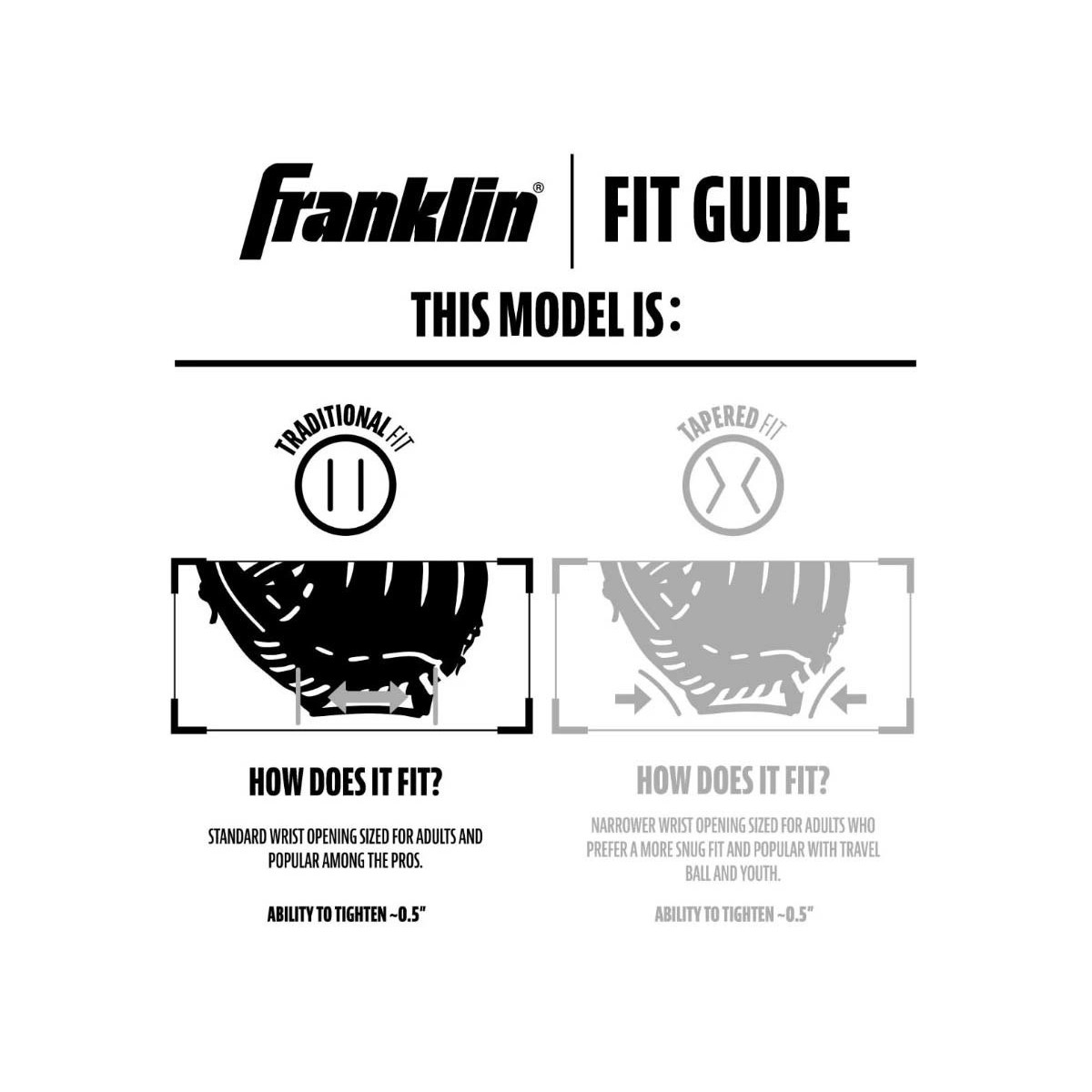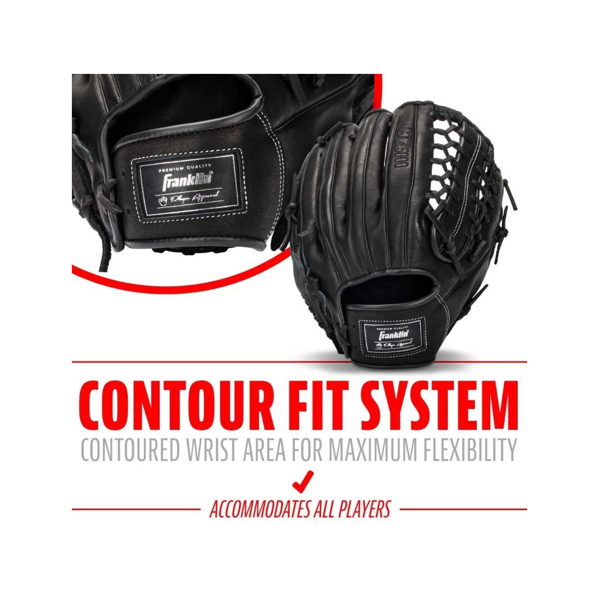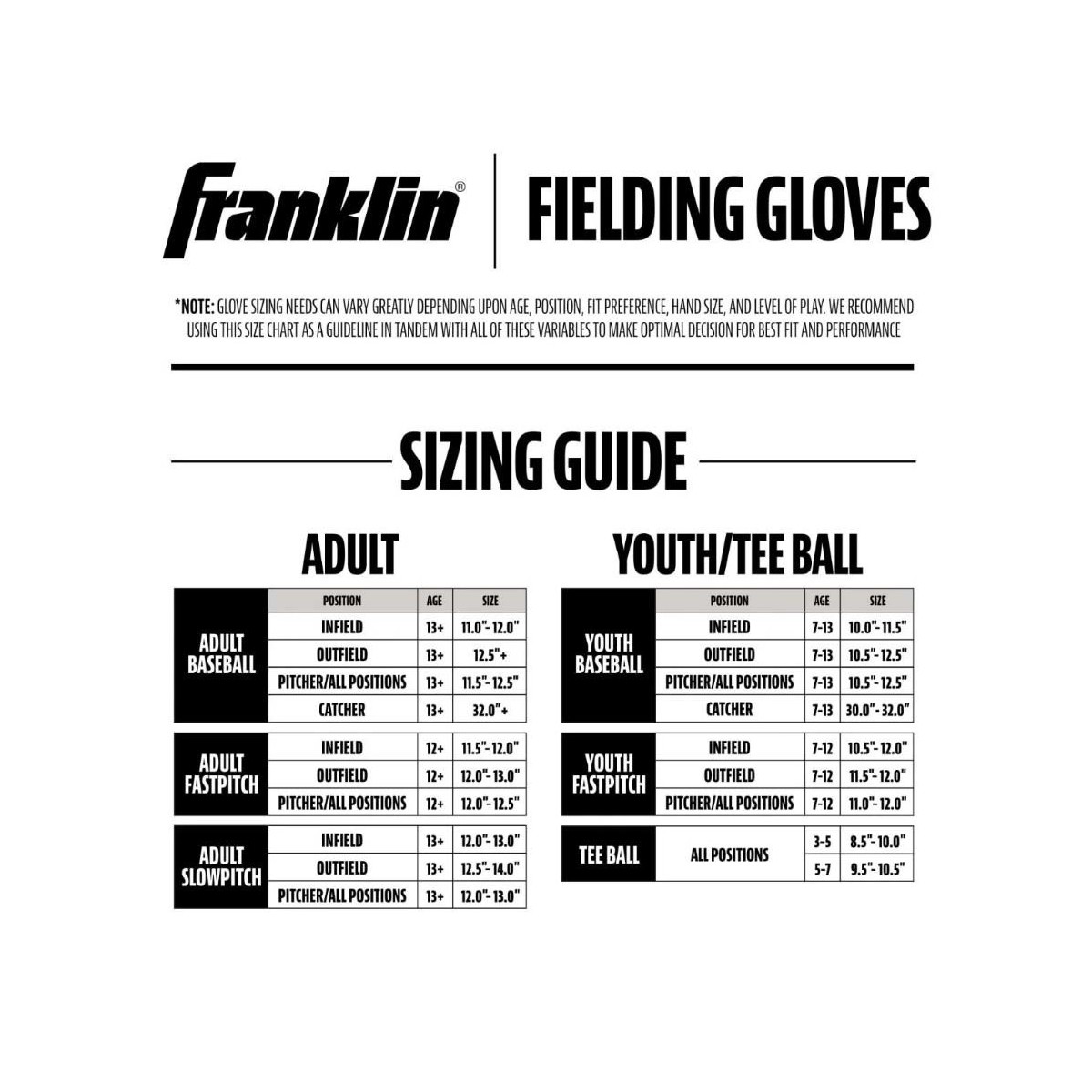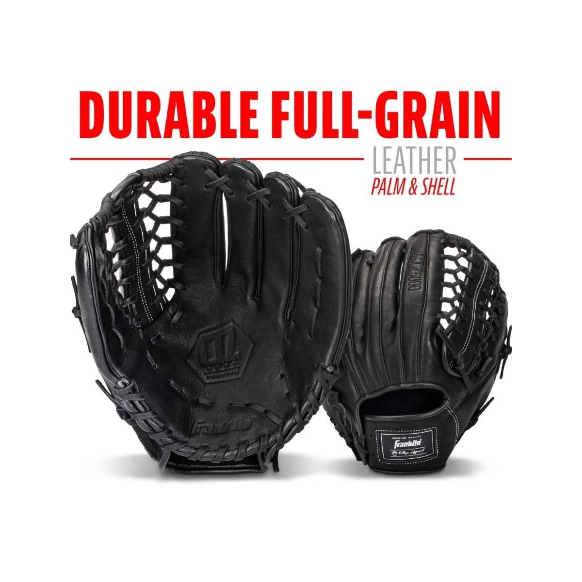 Franklin Sports' CTZ5000 series baseball glove is engineered with full-grain cowhide leather to provide optimium performance for baseball players of all ages. The premium black cowhide leather is both soft and durable, making it lightweight and easy to break in while also being tough enough to use season after season. The super-soft, genuine leather palm lining is designed to keep your hand cool, dry and comfortable so you can practice and play without blisters or sweaty palms. Plus, the chrome stitching and logo treatment give this mitt a modern, professional feel so you can look and play your best. No matter what position you play, there is a CTZ5000 glove for you, so grab yours and hit the field today!