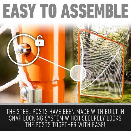 The Quikset lacrosse goal features the quality and durability you've come to expect with Franklin Sport's steel goals, but sets up in a fraction of the time! The exclusive Quikset lock down system eliminates the time and frustration of conventional rope tie assemblies. The goal includes premium steel tubing, a rugged heavy weight all weather pre-fit net with reinforced net edging and a durable tarpaulin back pocket. Shoot on this goal with confidence! Goal Size: 72" (W) X 72" (H) X 72" (D)