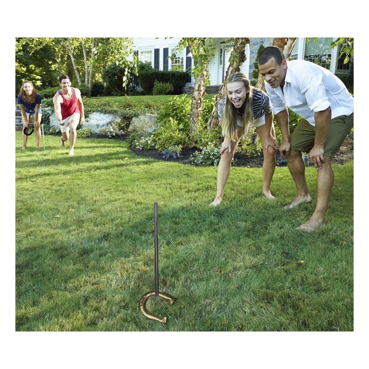 Are you looking for a fun and active way to spend quality time with your family and friends? If so, the Franklin Sports Starter Horseshoe Set is the perfect choice! This set comes with everything you need to get playing, including two official size and weight steel horseshoes, two steel stakes, and a carrying case for easy storage and transport. The horseshoes are designed with a solid steel construction that ensures long-lasting durability, while the included stakes are made with a galvanized steel material for maximum strength and stability. The carrying case also increases the set’s portability, meaning you can take your horseshoe set to the beach, park, or any other outdoor venue to enjoy a game of horseshoes. The set is suitable for players of all ages and skill levels, making it the perfect way to bond with friends and family. Moreover, horseshoe pitching is a great way to get some physical activity and hone your hand-eye coordination. With the Franklin Sports Starter Horseshoe Set, you’ll be able to have hours of fun with your loved ones.