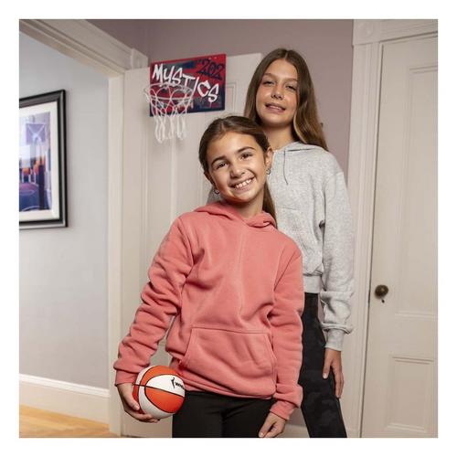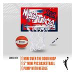 Bring all the fun of WNBA basketball inside with Franklin Sports' WNBA Kids Over the Door Basketball Hoop Sets! Designed with official WNBA team logos and colors, these mini basketball hoop sets are the perfect way for young fans to play and feel like their favorite basketball stars. Each set comes with (1) WNBA team over the door basketball hoop, (1) WNBA mini basketball, and (1) air pump included, so you have everything you need to play right out of the box. The kids mini hoop is super easy to assemble and is designed to fit on any sized door. Plus, the mini hoop hooks are constructed with a foam backing to prevent any damage to your doors during game play. Made with shatterproof backboards and a 9.5" inch spring-loaded steel rim, these indoor mini hoops are designed for premium, durable performance. These hoops are 3 pointer and slam dunk approved, so kids can practice all their favorite basketball skills. So if you're looking for the perfect gift for the young basketball fan in your life, look no further and grab your Franklin Sports WNBA Kids Over the Door Basketball Hoop Set today!