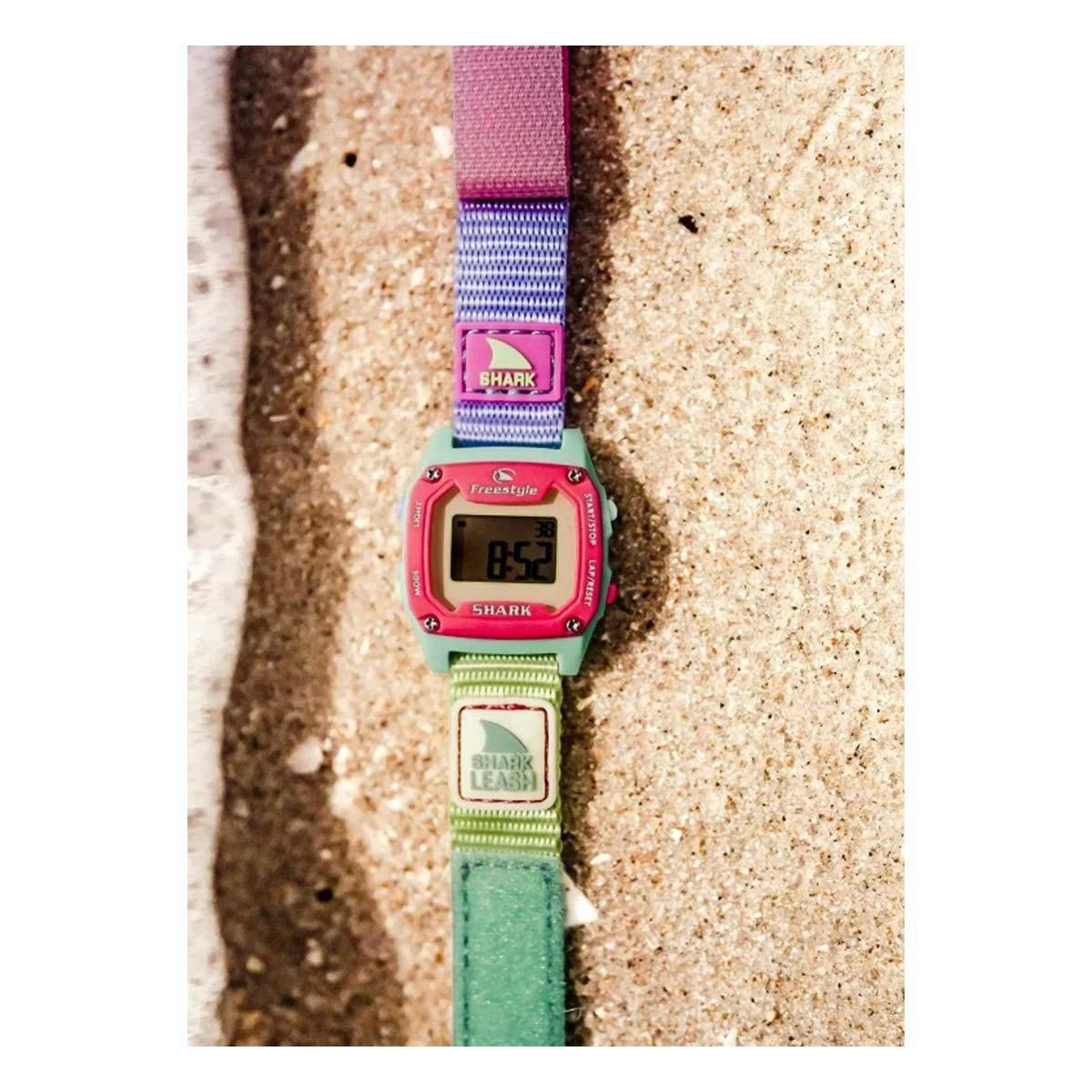 The mini-me version of the original Shark Leash, the Shark Leash Mini measures in with a 30mm case width best for fitting smaller wrists. The Shark Leash Mini is action-ready with features including alarm, dual time, countdown timer, stopwatch, and night vision backlight. Like all Freestyle Watches, the Shark Leash Mini is backed by our limited lifetime warranty and water resistant to 100 meters.