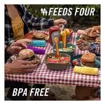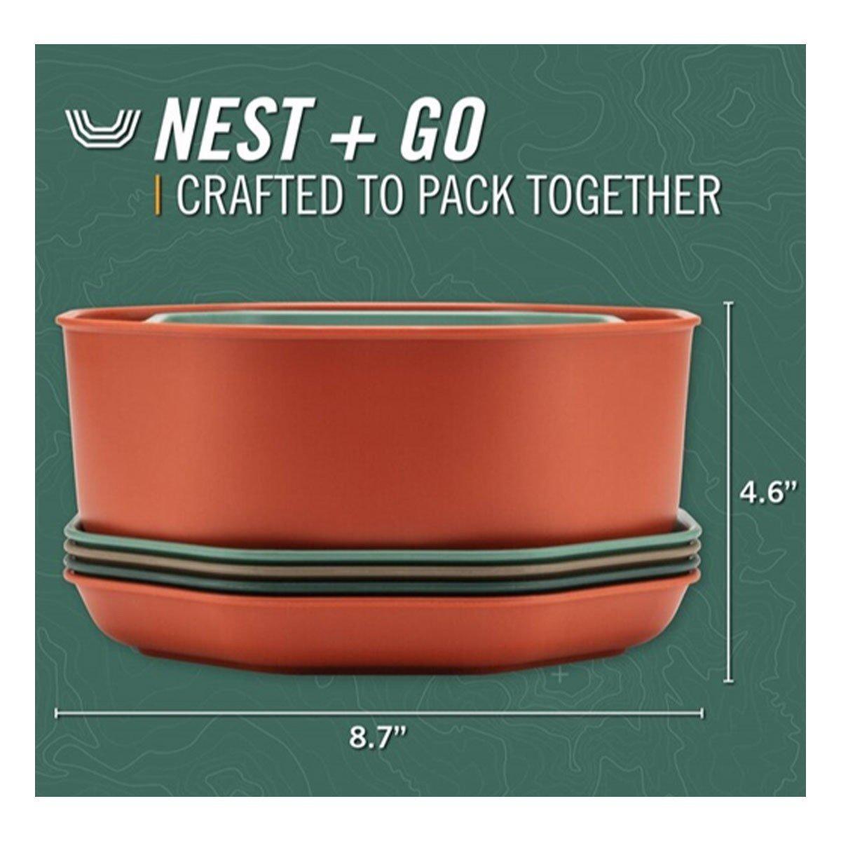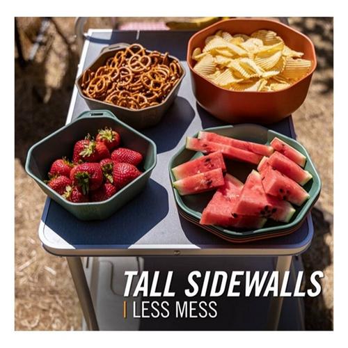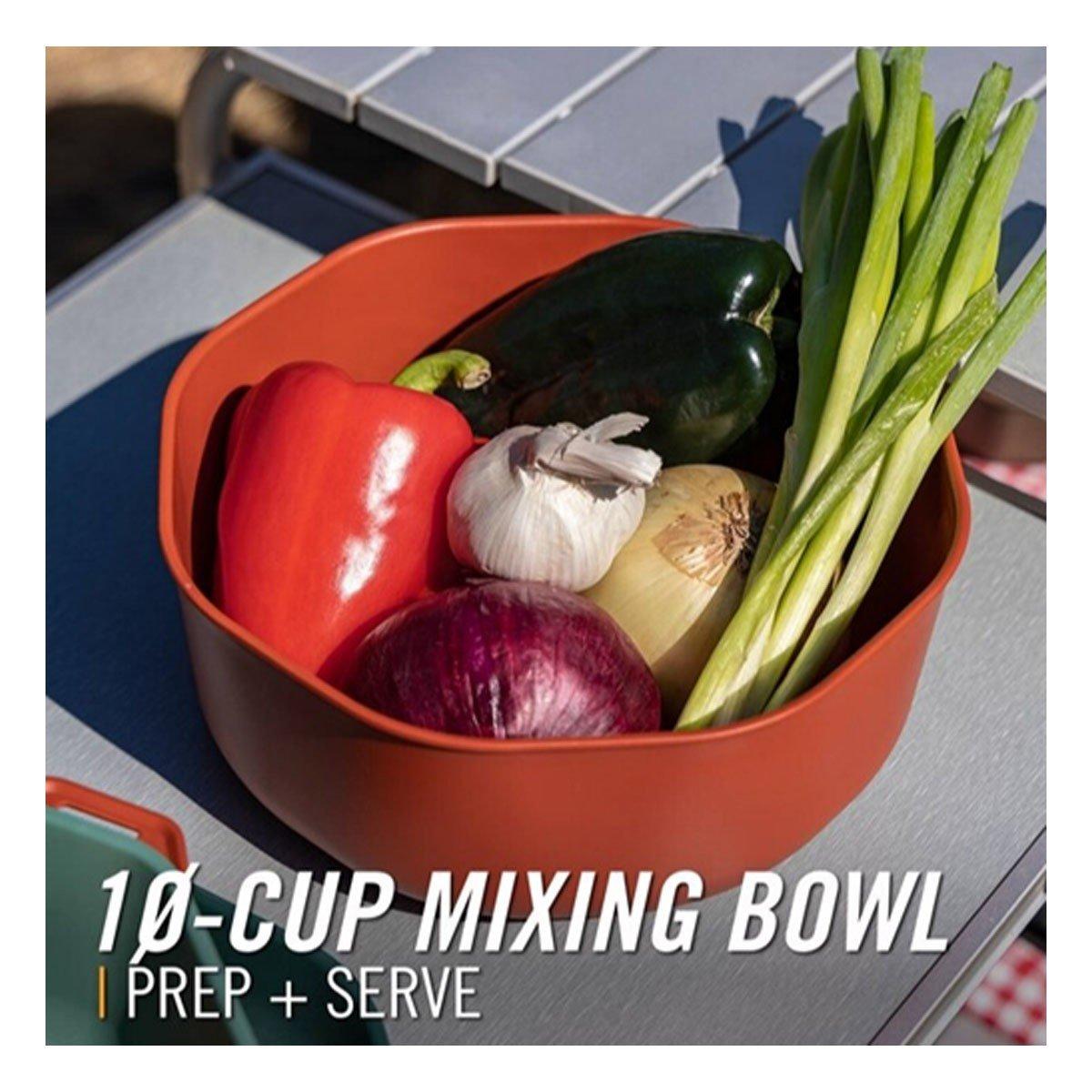 Dine out(side) with the packable 9-piece ComplEAT Tableware Set. Four bowls, four plates, and a 10-cup mixing bowl come together to handle everything from meal preparation to feeding the whole crew. This camping dinnerware set was designed with hungry campers in mind and doesn’t compromise on size, function or durability. When mealtime is over, everything nests together.