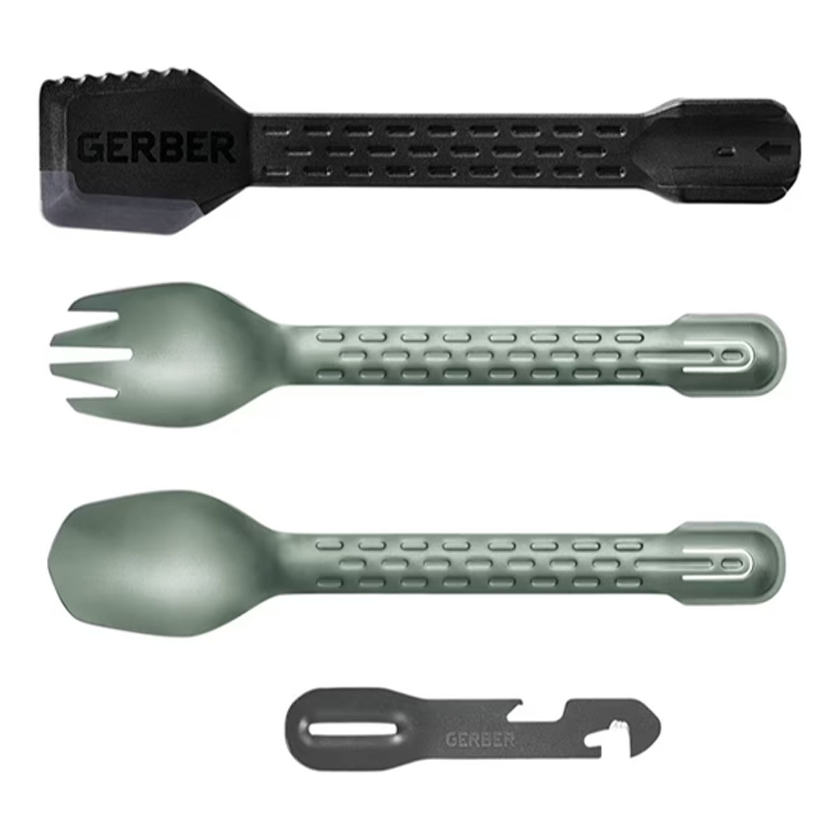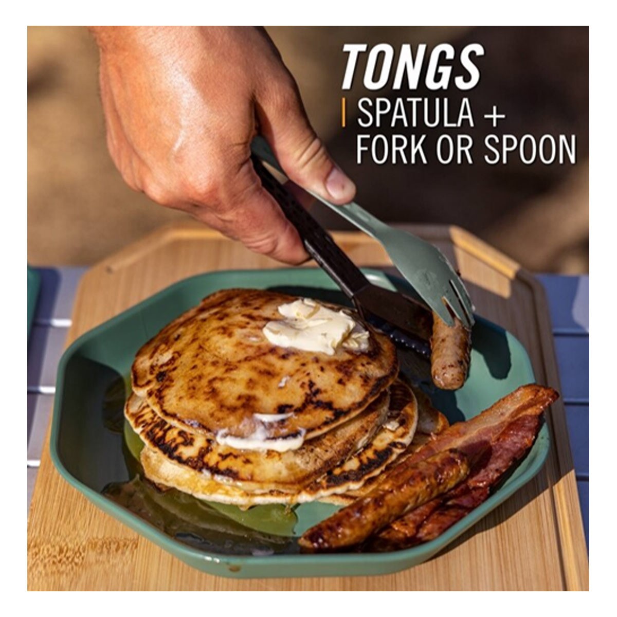 On the trail, the most important meal of the day is the one you’re about to eat. Gerber's ComplEAT Utensil Set has the bases covered with a fork, spoon, spatula, and 4 function multi-tool that nest for transport as well as snap together to convert into functional tongs. Cook, eat, clean and get back out there.