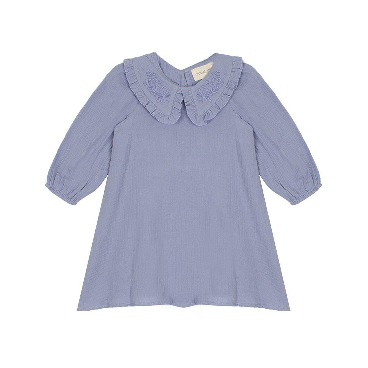 Girls' Mabel + Honey Bella Blue Long Sleeve Midi Babydoll Dress