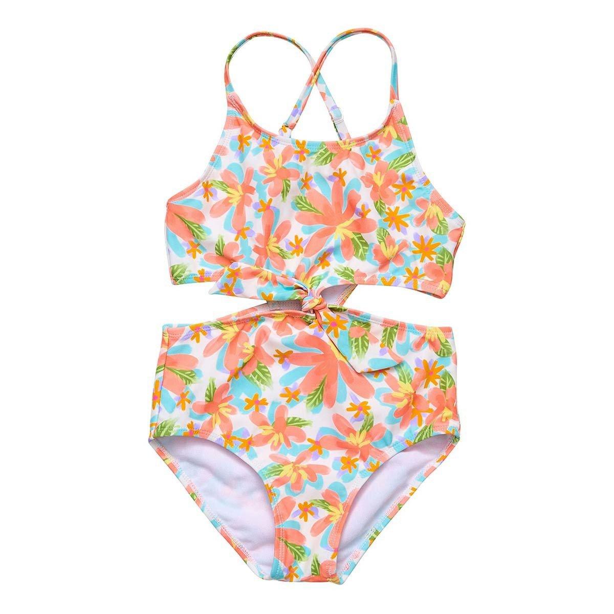 Girls' Snapper Rock Hawaiian Luau Sustainable Cut Out One Piece Swimsuit