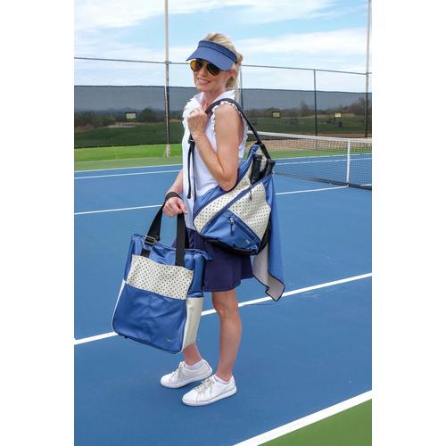 Carry your pickle ball gear in style with this sling bag, This sling bag effortlessly holds all your pickle ball gear, including up to 6 paddles, pickle balls, phone, keys, cash, and more! This bag is fuctional and fashionable. The bag includes large pockets, built in cell phone and key storage, and comes with a clip on shoe bag.