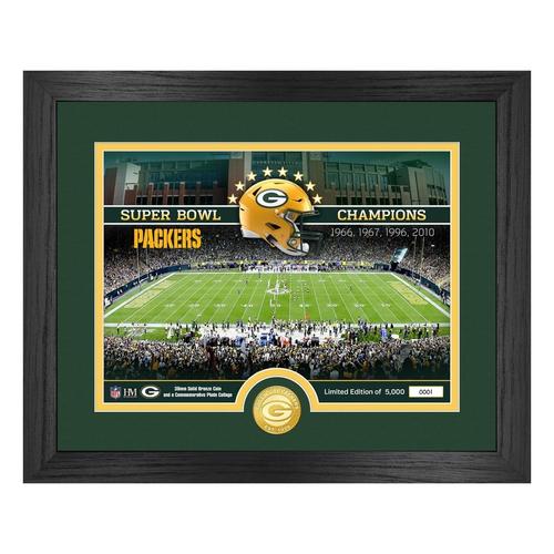 Add some team spirit to your home with the Green Bay Packers Stadium Bronze Coin Photo Mint. With this Green Bay Packers decor, you’ll leave no doubt who you root for. From the living room to the kitchen, this Green Bay Packers decoration will help you cheer on your team to victory. Show off your favorite NFL team to all your visitors and personalize your house, apartment, or fan cave with the Green Bay Packers Stadium Bronze Coin Photo Mint.