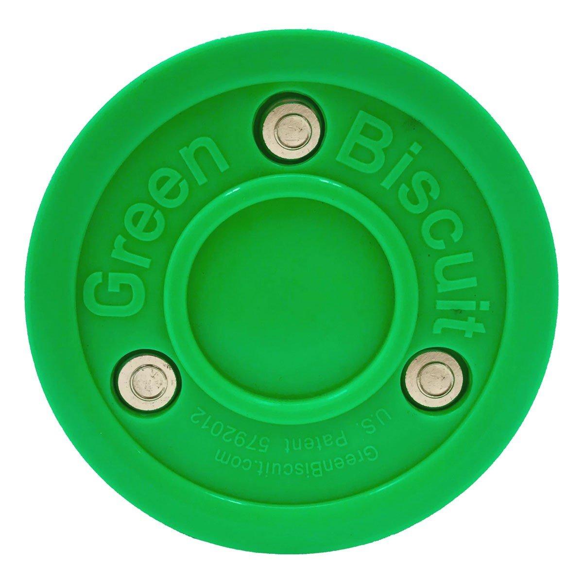 The Original green color Green Biscuit puck now has puck tread edges for a realistic ice hockey puck feel on your stick blade. It makes stick handling and saucer passing practice even better!