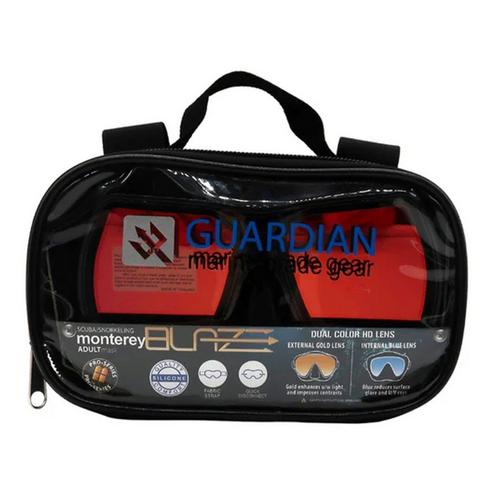 {"reviews":[],"offset":0,"limit":10,"total":0,"gtin":"811740035210"}"Full Description:\nThe Guardian Scuba Monterey Blaze Mask offers a wide field of vision with its low-profile, tempered glass lens, and a comfortable silicone skirt for a secure fit, perfect for scuba diving and snorkeling.\n\nFeatures:\n\u003cul>\n\u003cli>DUAL COLOR HD LENS GUARDIAN exclusive mask & fin, designed in USA.\u003c/li>\n\u003cli>Liquid silicone skirt for fit & comfort; “Best fitting skirt of all time”.\u003c/li>\n\u003cli>Tempered glass lens for maximum clarity and scratch-resistant durability.\u003c/li>\n\u003cli>Super comfortable ski-goggle-like strap with built-in snorkel holder.\u003c/li>\n\u003cli>BLACK ECO-friendly zippered carry bag included.\u003c/li>\n\u003c/ul>\n\nSpecifications:\n\u003cul>\n\u003cli>Packaging - ZIPPERED NYLON KITTING BAG\u003c/li>\n\u003c/ul>\n"