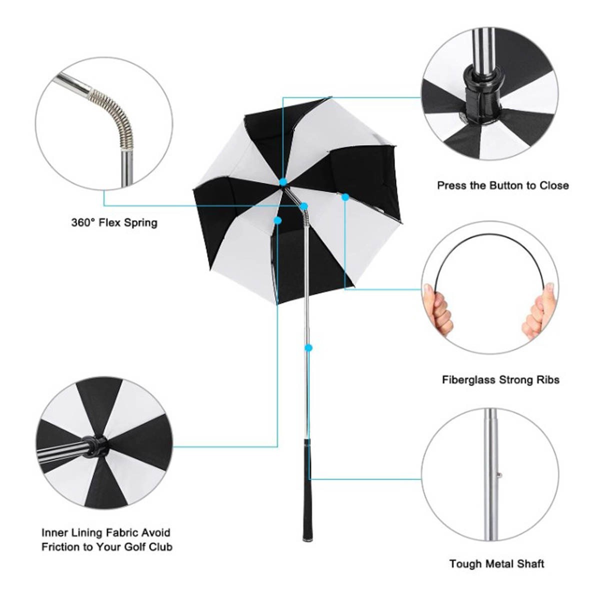 Regardless of whether you are caught in just a sprinkle or a downpour, tThe Club Canopy Golf Bag Umbrella will protect your clubs!