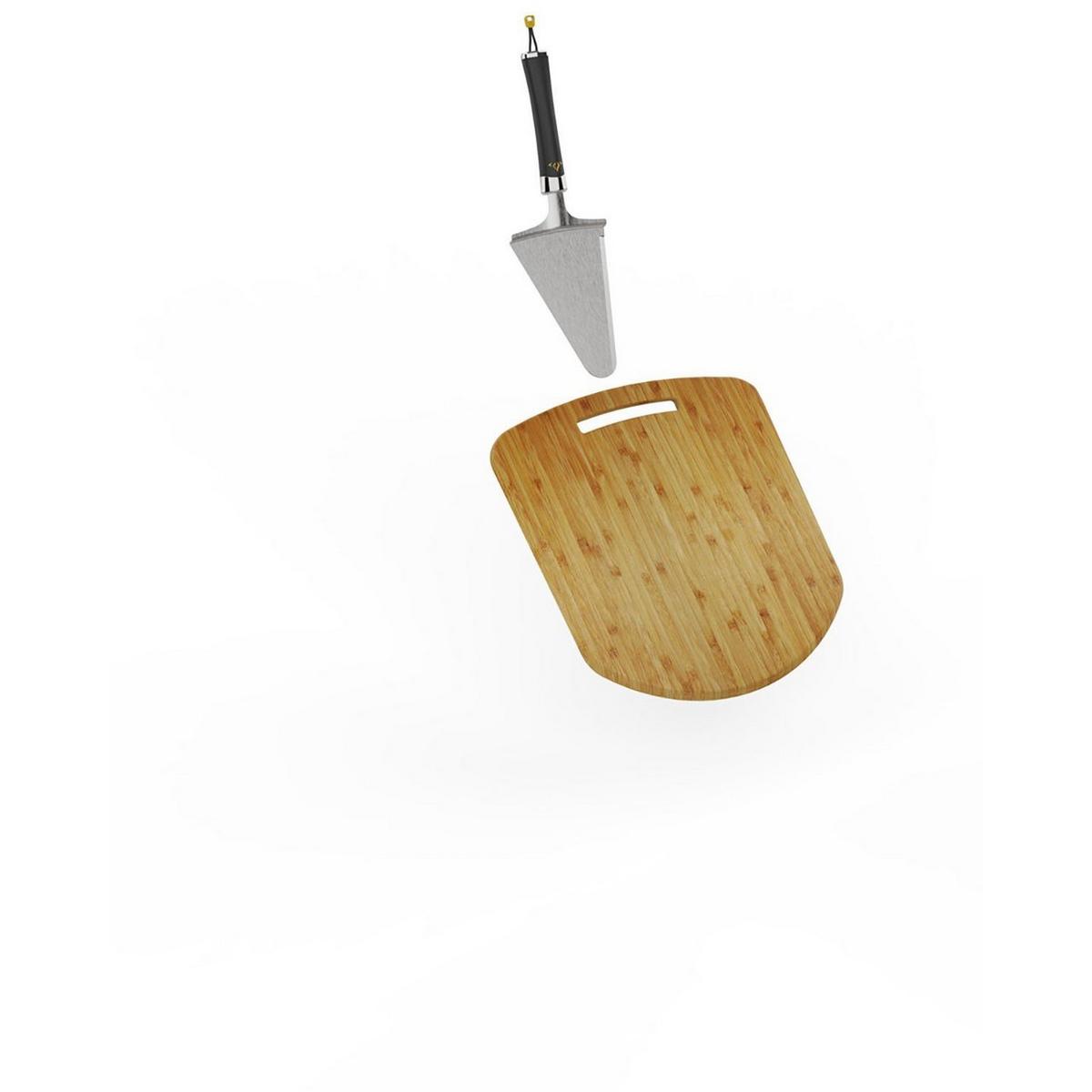 The Cook + Serve Pizza Kit is a 6-piece set which contains 3 pizza peels, tongs, a slice server, and a pizza cutter. The 2 bamboo pizza peels double as cutting boards for prep and launch into the oven. And the stainless-steel peel is perfect for both launching and separating the pizza from the cordierite stone upon retrieval. The handle for the peels can also be used as your slice server separately, and our mezzaluna-style cutter is ideal for the slicing of any pie large or small. If you need some extended reach or need help retrieving pizza, our uniquely designed tongs are great for grabbing crusts or removing any type of food from your Versa 16 Outdoor Pizza Oven. This is the ultimate all-in-one kit to streamline your pizza process.