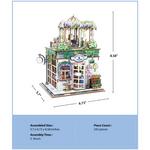 Dripping with cascading wisteria blossoms, this Wisteria Vine Flower Shop feels like a hidden gem along a quiet street. This DIY wooden miniature features delicate floral details, a charming storefront, and warm LED lighting that softly illuminates the scene once complete.
