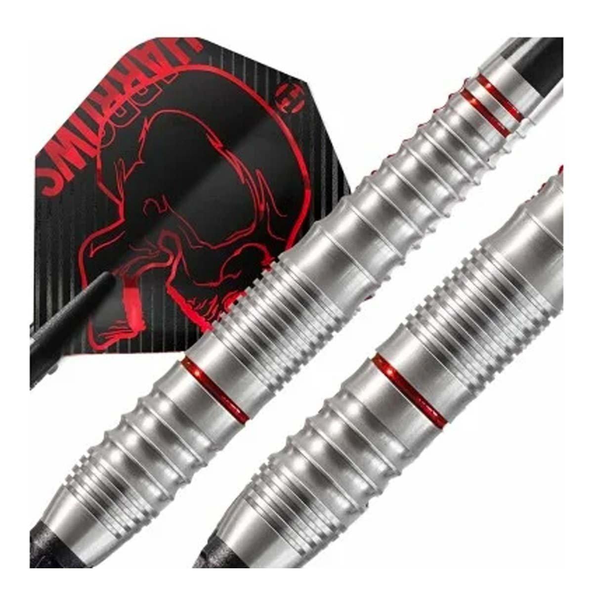 The darts have a matte finish and three eye-catching metallic red rings that give them a tungsten-like appearance.