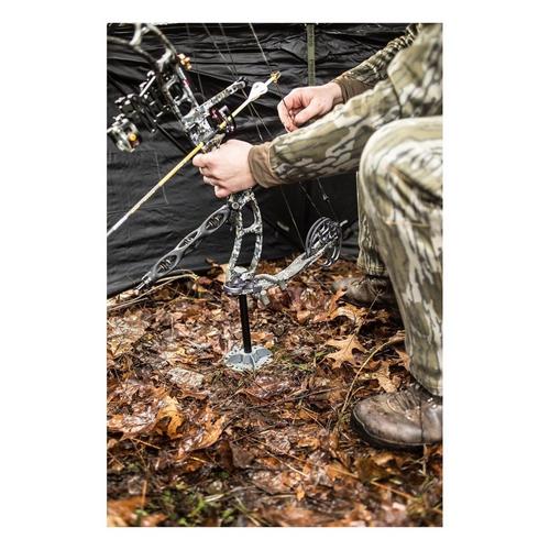 Position your bow at your fingertips while you sit on the ground hands-free. The portable EARTH ANCHOR™ BOW HOLDER quickly digs into the ground with a 6” Deep Earth Auger. Combined with a Rugged Ground Plate, this bow holder is Ultra Stable & Secure. Designed to work with most bows and perfect for hunting from a ground blind or shooting in the backyard - never lay your bow on the ground again! Premium Silent-Grip™ Limb Fork adjusts 360° and locks securely with geared teeth at the perfect angle for grabbing your bow when needed.