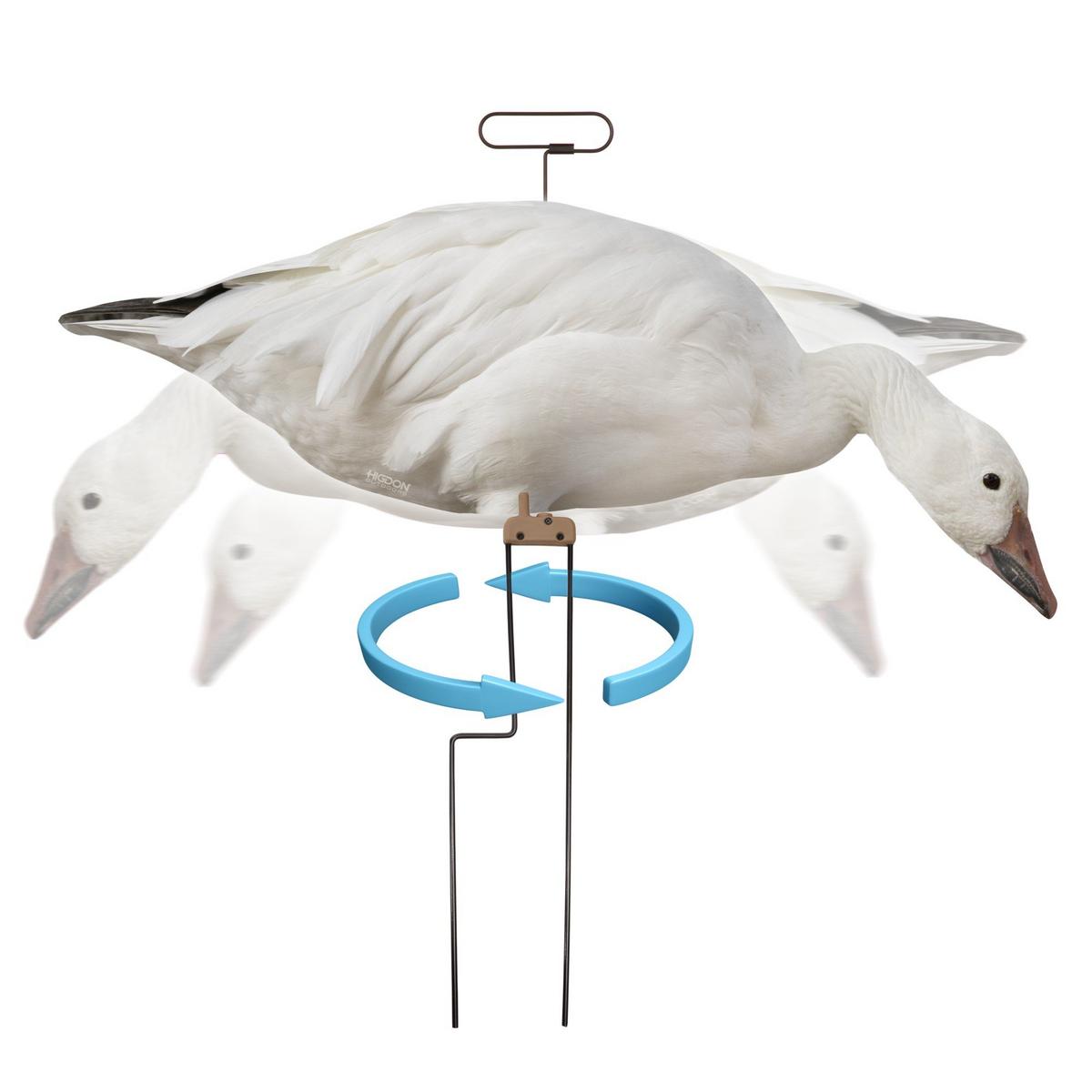 The easy and convenient way to add motion to your goose spread. Higdon Outdoors MOTION FLATS Silhouette decoys are sturdy, lightweight, easy to carry, easy to deploy, and lightning fast to pick up. They offer realistic high resolution printed detail with a finish that won't fade and is resistant to glare. Higdon's innovative motion stake system allows your silhouette decoys to rotate up to 145 degrees in even the slightest wind. 12-Pack. Box includes 12 Tall Motion Stake systems, and 12 Standard size Goose Decoys: 4 Mature Snow Goose Walkers, 4 Mature Snow Goose Feeders and 4 Juvy Snow Goose Feeders.