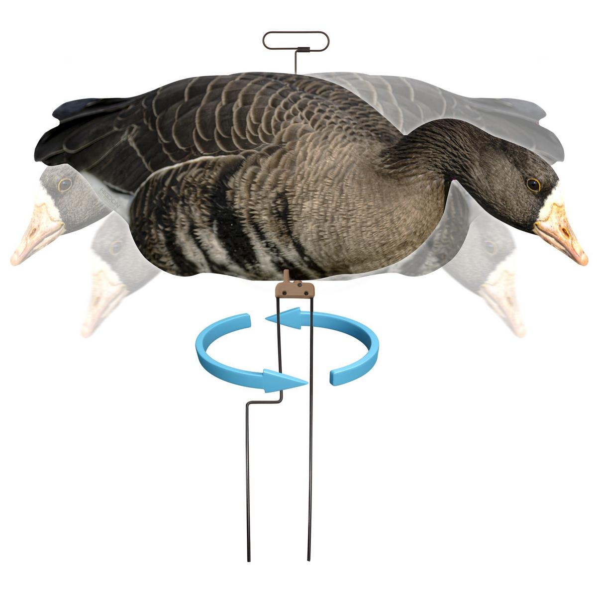 The easy and convenient way to add motion to your goose spread. Higdon Outdoors MOTION FLATS Silhouette decoys are sturdy, lightweight, easy to carry, easy to deploy, and lightning fast to pick up. They offer realistic high resolution printed detail with a finish that won't fade and is resistant to glare. Higdon's innovative motion stake system allows your silhouette decoys to rotate up to 145 degrees in even the slightest wind. 12-Pack. Box includes 12 Tall Motion Stake systems, and 12 Standard size goose decoys: 4 Walkers, 4 Semi-Feeders and 4 Feeders.