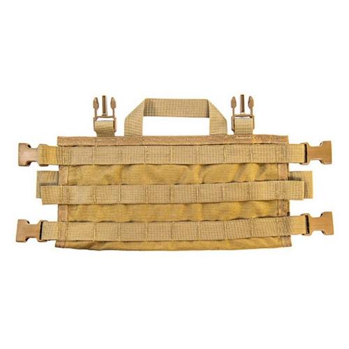 The AO Chest Rig is feature rich and low cost. The front panel is efficiently constructed to provide three rows and eight columns of PALS. The panel has side openings to store paperwork or maps. This rig also features a hook fastener panel on the back side for easy integration onto many plate carrier systems. A carry handle is sewn into the top to allow quick transport if you have to grab and go.