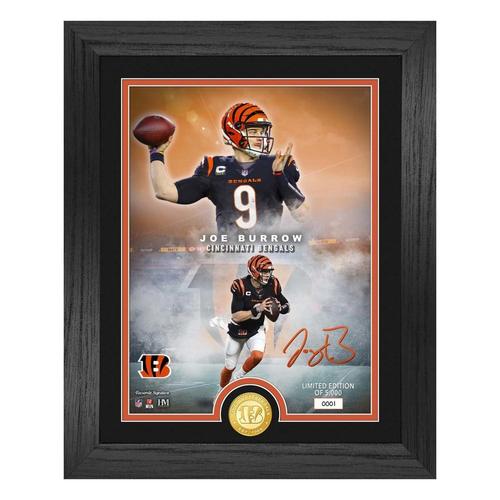 Proudly display your Cincinnati Bengals spirit with the Highland Mint Joe Burrow Cincinnati Bengals NFl Legends Bronze Coin Photo Mint. Whether you’re a collector of all things Cincinnati Bengals or want to display your pride, this piece of Cincinnati Bengals memorabilia will help you do just that. From the home to the office, this NFL collectible will help you show off your team pride. With the Highland Mint Joe Burrow Cincinnati Bengals NFl Legends Bronze Coin Photo Mint, no one will doubt your favorite NFL team.