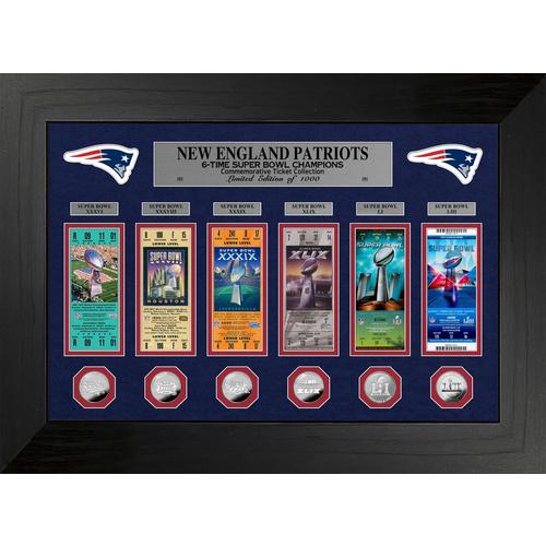Highland Mint New England Patriots 6-Time Super Bowl Champions Deluxe Ticket & Silver Game Coin Collection