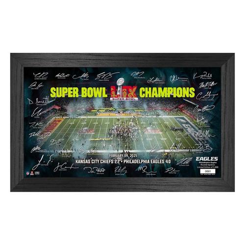 Proudly display your Philadelphia Eagles spirit with the Highland Mint Philadelphia Eagles Super Bowl LIX Champions Signature Gridiron Frame. Whether you’re a collector of all things Philadelphia Eagles or want to display your pride, this piece of Philadelphia Eagles memorabilia will help you do just that. From the home to the office, this NFL collectible will help you show off your team pride. With the Highland Mint Philadelphia Eagles Super Bowl LIX Champions Signature Gridiron Frame, no one will doubt your favorite NFL team.