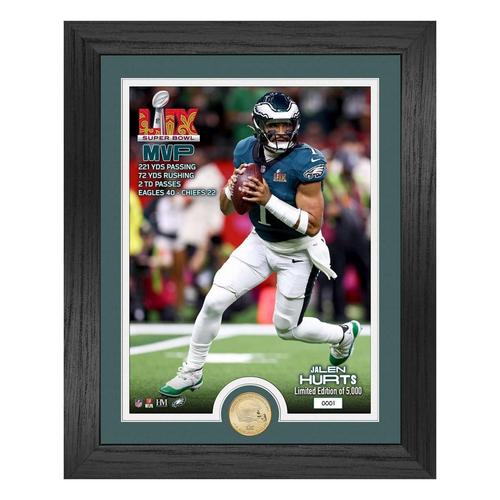 {"reviews":[],"offset":0,"limit":10,"total":0,"gtin":"633204212728"}"Full Description:\nHighland Mint Philadelphia Eagles Super Bowl LIX MVP Bronze Coin Photo Mint\n\nFeatures:\n\u003cul>\n\u003cli>This limited edition 13” x 16” frame commemorates the Super Bowl LIX Game MVP. Double matted under acrylic glass in a wood frame is an exclusive 8"x11" hand numbered print of the Super Bowl LIX MVP in action combined with a the 39mm minted Super Bowl LIX Champions Bronze Coin. As a limited edition of only 5000 and officially licensed by the NFL and NFLPA each photo mint is accompanied by a certificate of authenticity. Proudly made in the U.S.A. by The Highland Mint!\u003c/li>\n\u003c/ul>\n\n"
