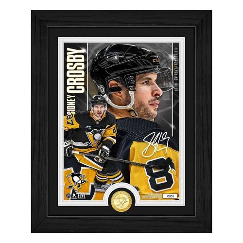 The Pittsburgh Penguins' Sidney Crosby is featured in this limited edition 13"x16" framed collectible that includes a stunning 8"x11" custom-designed artist print and a minted 39mm Pittsburgh Penguins bronze coin. Elegantly double-matted and protected under acrylic glass, this premium display piece is a must-have for NHL fans and collectors. Only 1,000 individually numbered pieces exist — each officially licensed by the NHL and NHLPA. Each frame includes a certificate of authenticity. Proudly made in the U.S.A. by The Highland Mint, this collectible arrives ready to hang and ready to impress.