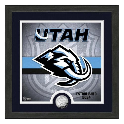 This limited-edition collectible frame measures 13" x 13" and showcases a custom print with the new Utah Mammoth logo. Individually hand-numbered print is matted beneath acrylic glass alongside a minted 39mm silver-plated team coin. Only 2,025 pieces will be produced, with each individually numbered and accompanied by a certificate of authenticity. Officially licensed by the NHL and proudly crafted in the USA by The Highland Mint.