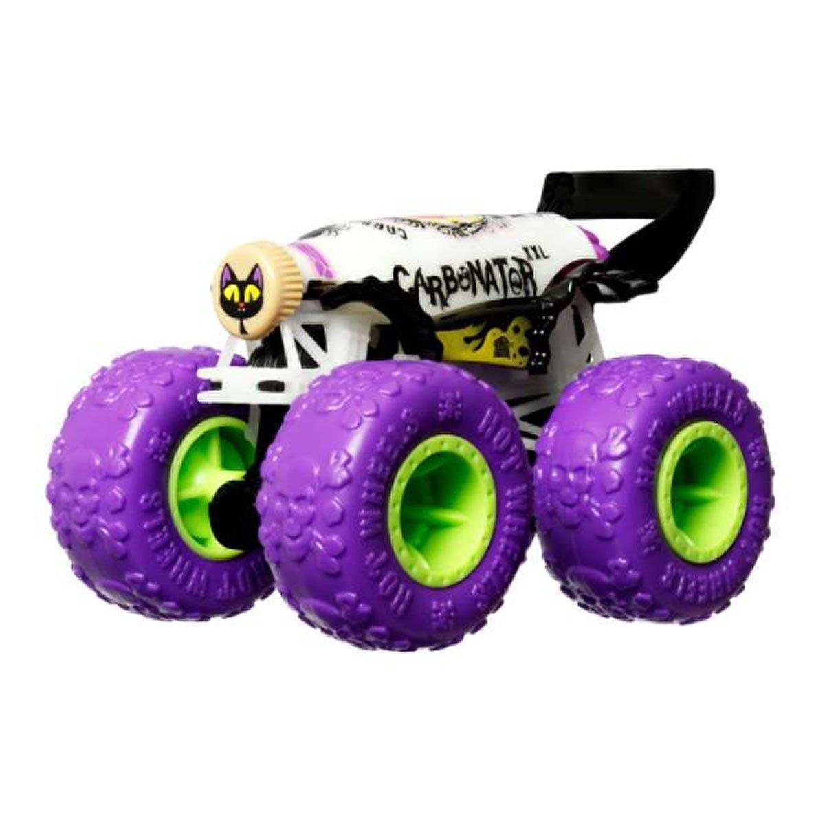 The action gets more exciting when the lights go off with Hot Wheels Monster Trucks that glow in the dark! Each die-cast toy truck is 1:64 scale and features the big wheels and awesome designs that fans love. It also has glow-in-the-dark elements that inspire visually exciting crashing and smashing! Monster Trucks fans and collectors will want them all! Each sold separately, subject to availability. Styles, colors and decorations may vary.