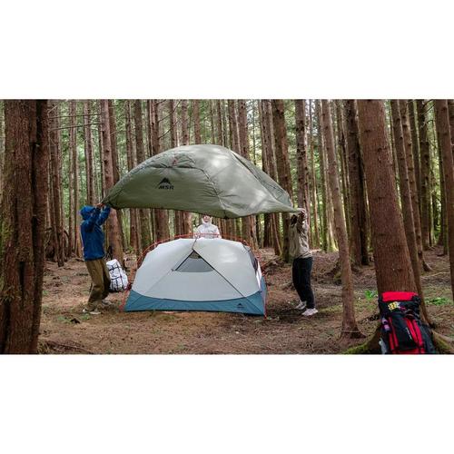 The Inside: The interior is a roomy 47 sq. feet (4.35 sq. m) with no taper to accommodate modern rectangular sleeping pads, plenty of room to relax and wait out the elements. The tent body is mostly solid nylon fabric for maximum weather protection, with just enough solution-dyed micromesh for breathability and bug protection. Durable, no-curve tent doors feature zippers that are easy to use with one hand. They also zip closed to a single point, so you always know where to open the door, even in the dark. Tech-friendly pockets feature cable ports at the corners for headphones and charging cords. Large overhead gear loft pockets are perfect for headlamps, sunglasses and other quick-access items, and an included clothesline lets you dry out damp clothes.