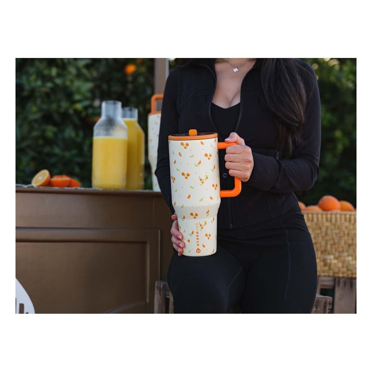 The HydroJug 32oz Traveler Tumbler combines style, durability, and convenience for your on-the-go hydration needs. Its triple-wall insulation keeps your beverages ice cold for hours, while the completely leakproof design and flip-tab straw ensure no messes while on the move. This HydroJug 32oz Tumbler features a cupholder-compatible design for convenience on road trips or your daily commute. The rubber base protects surfaces, and the BPA-free, dishwasher-safe construction ensures it's both safe and easy to clean. For all-day leakproof hydration, choose the HydroJug 32oz Traveler Tumbler.