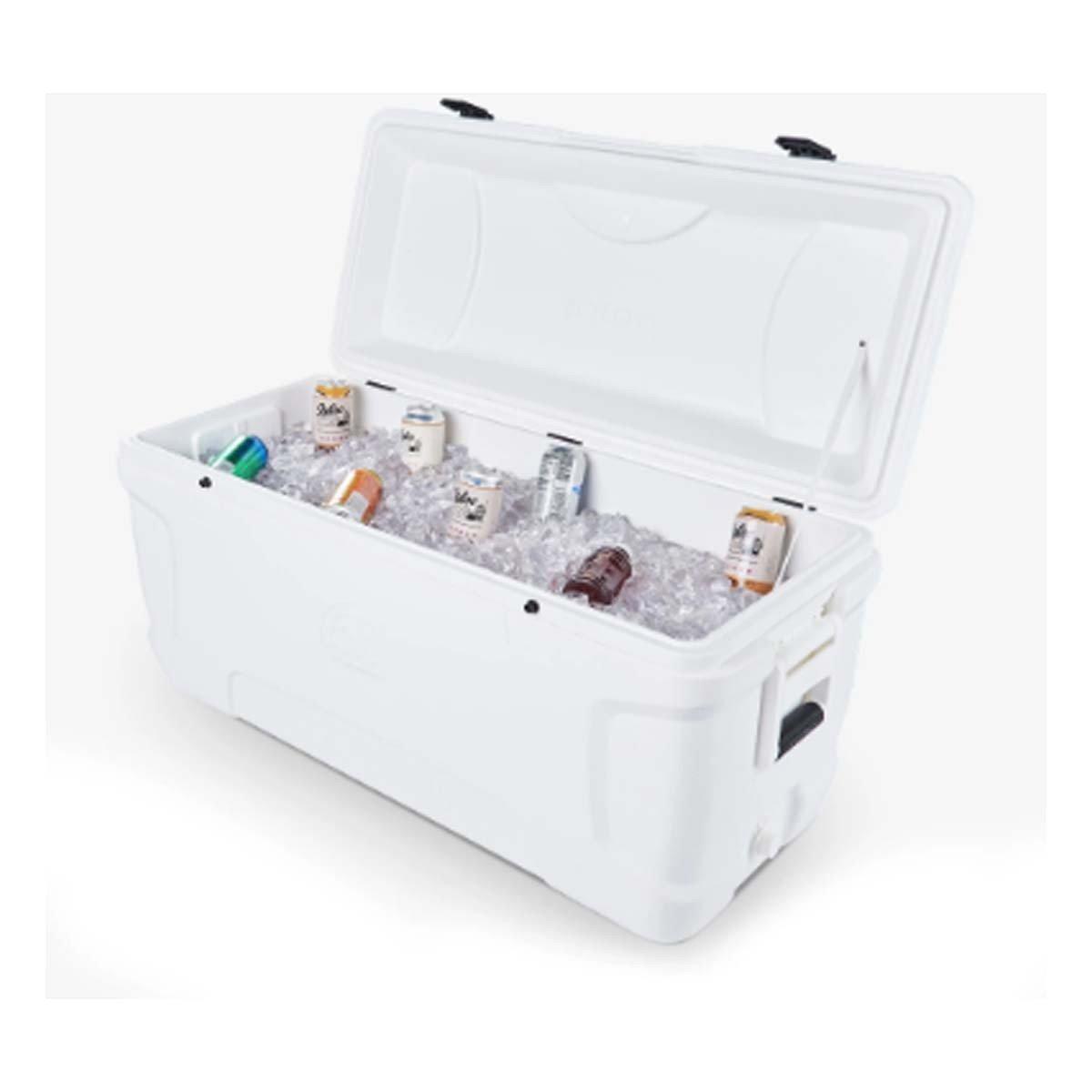 Grab your tackle box and best friends for a day out on the lake or ocean. With the Igloo 150-Quart Marine Contour cooler, you can fill it to the brim with drinks and food for everyone. With the non-slip handles, you won't miss grabbing your snacks when your hands are wet. Once you reel in your catch of the day, you can measure your fish with the integrated fish ruler on the lid. Enjoy your day in the sun and with the ultraviolet inhibitors you will never have to worry about your cooler fading.