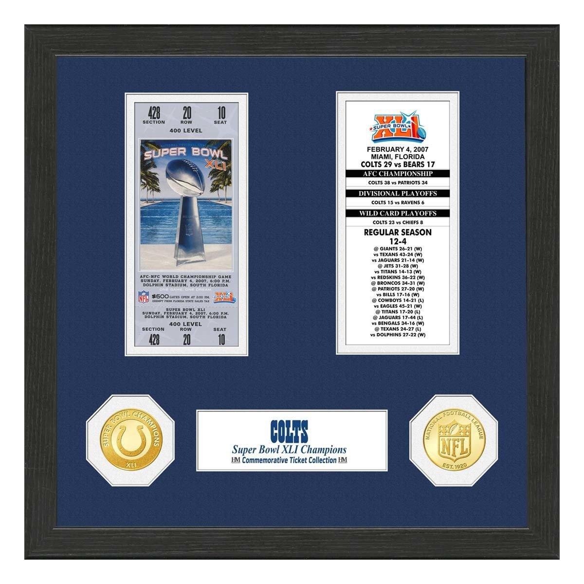 Proudly display your Indianapolis Colts spirit with the Indianapolis Colts SB Championship Ticket Collection. Whether you’re a collector of all things Indianapolis Colts or want to display your pride, this piece of Indianapolis Colts memorabilia will help you do just that. From the home to the office, this NFL collectible will help you show off your team pride. With the Indianapolis Colts SB Championship Ticket Collection, no one will doubt your favorite NFL team.