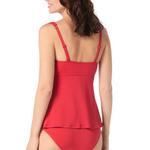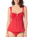 A supportive and stylish solid tankini top. Ring front adds a statement to the neckline. Mix and match with coordinating soft, textured, honeycomb fabric bottoms for the perfect pairings.