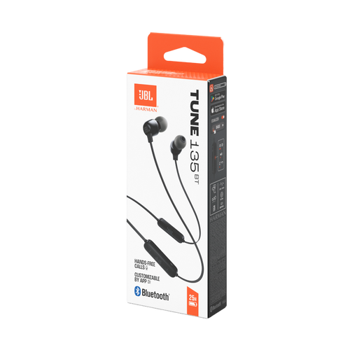 Introducing JBL Tune 135BT wireless in-ear headphones with JBL Pure Bass Sound. Thanks to the 25-hour battery life they can wirelessly stream high quality audio and provide hands-free call management. The Tune 135BT feature a pair of 8.6mm drivers punching out some serious bass, while the soft, ergonomically shaped earbuds ensure the listening experience remains comfortable for long-listening hours. In addition, a three-button remote with mic on a tangle-free cable lets you control music and calls and access your devices' voice assistant. The multi-point connection allows you to never miss a call, making the JBL Tune 135BT your everyday companion for work, at home and on the go.