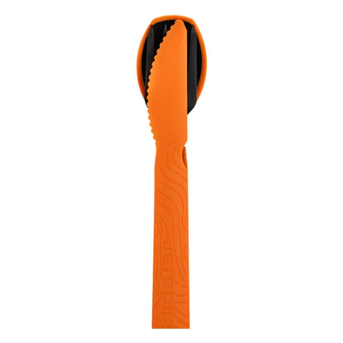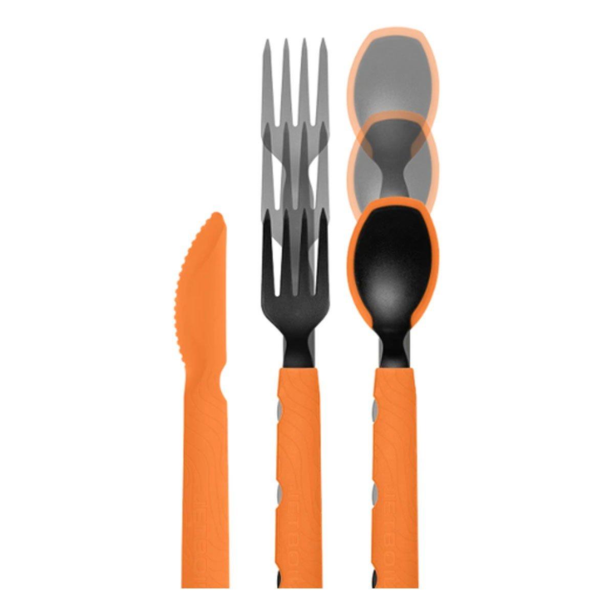 The perfect outdoor utensil set. Forget about the mess and hassle of cleaning on the trail. The new Jetboil TrailWare is designed to easily extend and reach inside a Jetboil cookpot or dehydrated meal package. The unique silicone edge spoon will easily scrape every morsel while minimizing scratches to the pot surface. All three utensils snap together for easy storage and transport.