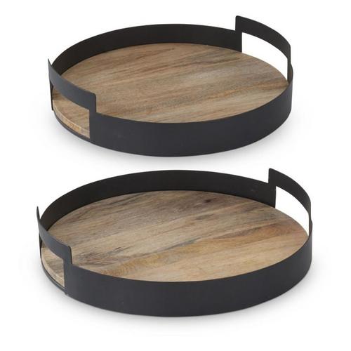 K&K Interiors Black Metal Edge Wood Nesting Trays with Handles (Set of 2)