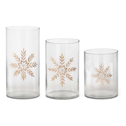 {"reviews":[],"offset":0,"limit":10,"total":0,"gtin":"840417335230"}"Full Description:\nAdd festive sparkle with this clear glass candle holder, featuring etched gold snowflakes. Sold individually, it’s perfect for holiday décor or adding a warm, seasonal glow to any space.\n\nFeatures:\n\u003cul>\n\u003cli>100% Glass\u003c/li>\n\u003c/ul>\n\nSpecifications:\n\u003cul>\n\u003cli>SM 8"H x 6"W x 6"D\u003c/li>\n\u003cli>MD 10"H x 6"W x 6"D\u003c/li>\n\u003cli>LG 12"H x 6"W x 6"D\u003c/li>\n\u003c/ul>\n"