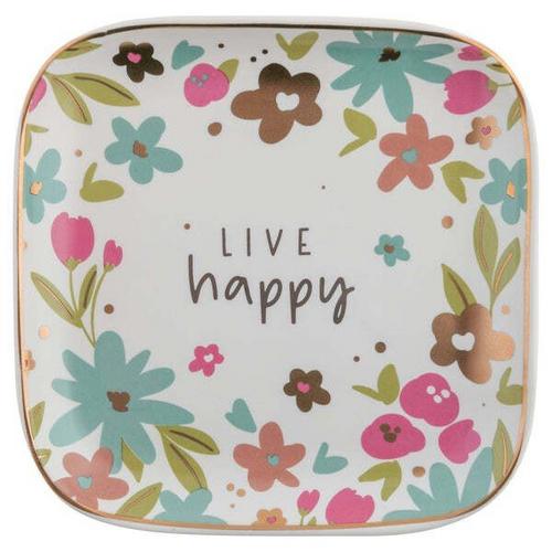 Karma Gifts Live Happy Flora Square Trinket Tray