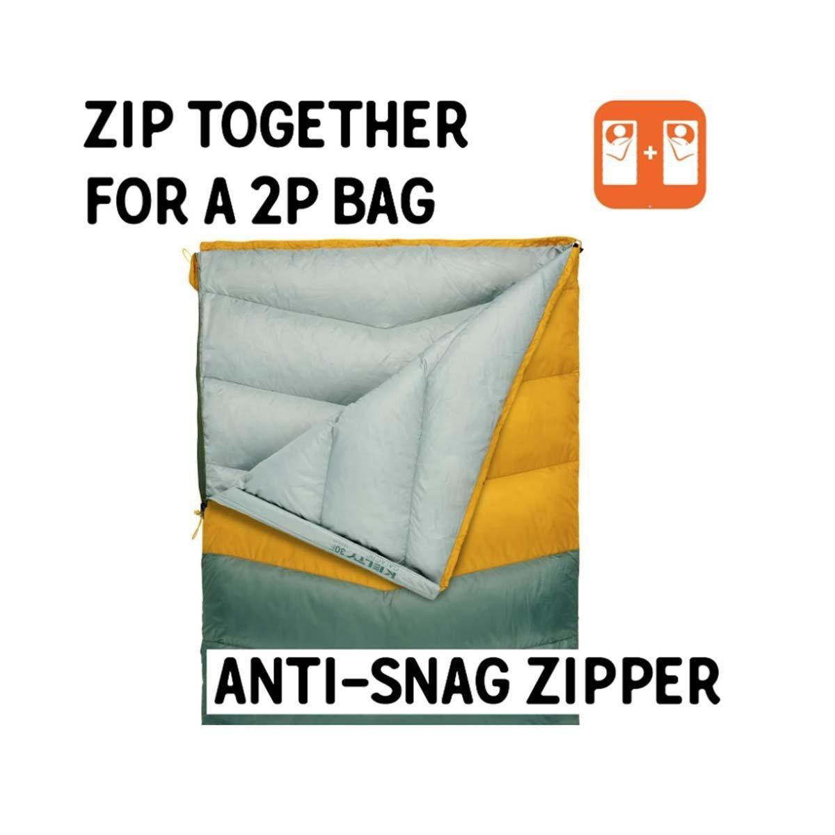 The down-filled Kelty Galactic 30 sleeping bag is compact enough for you to carry for nights on the trail, yet roomy enough to stretch out in on starry nights spent close to your car.