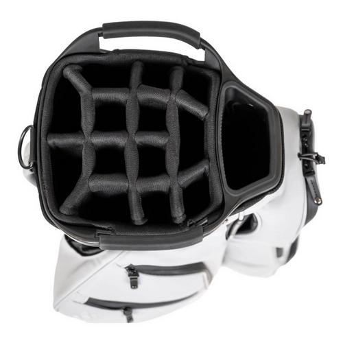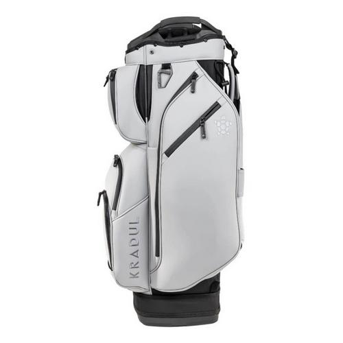 The ultimate companion for a smooth ride, the LUX Cart Bag delivers all the necessary functions, wrapped in a luxury VEGAN Leather package, which can commit all attention to your shots. Featuring three velvet lined luxury pockets for all valuables and electronics, all protected by waterproof zippers, ensuring contents stay valuable. A reinforced cart strap tunnel disappears behind your pockets, coupled with an over molded, rubber bottom ensures your bag remains stable on the cart while maintaining access to all your pockets during play. The removable front decoration pocket, single strap and carry handle, umbrella containment system, quick access electronics pocket, towel holder, external pen holder and a matching rain hood complete the functionality of this luxury masterpiece.